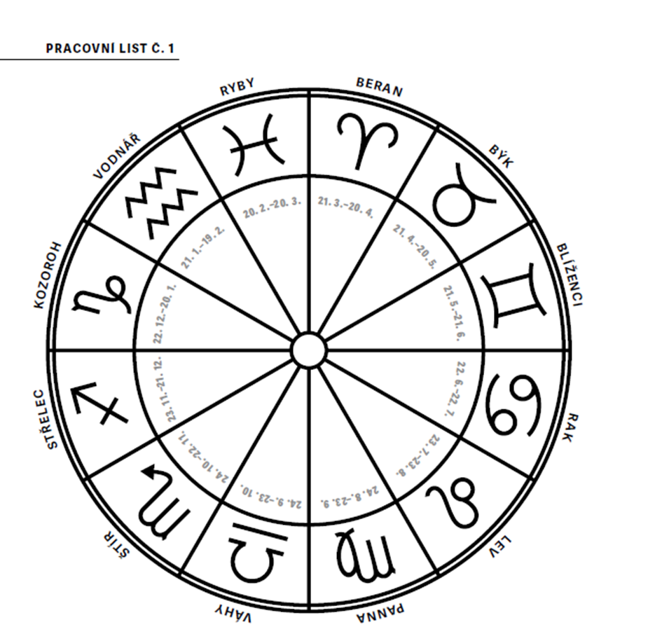 Úkol pro rychlíky: Nejdříve si sdělte navzájem den svých narozenin (tedy kdy jste se narodili). Podle svého data narození a pomocí tabulky z pracovního listu č. 1 zjistěte, jaké jste znamení zvěrokruhu, a vyberte si jeden minerál (nerost), který patří k vašemu znamení. Pomocí atlasu nerostů zjistěte o svém nerostu co nejvíce informací a ty si zapamatujte. Na malý papírek si můžete udělat poznámky.