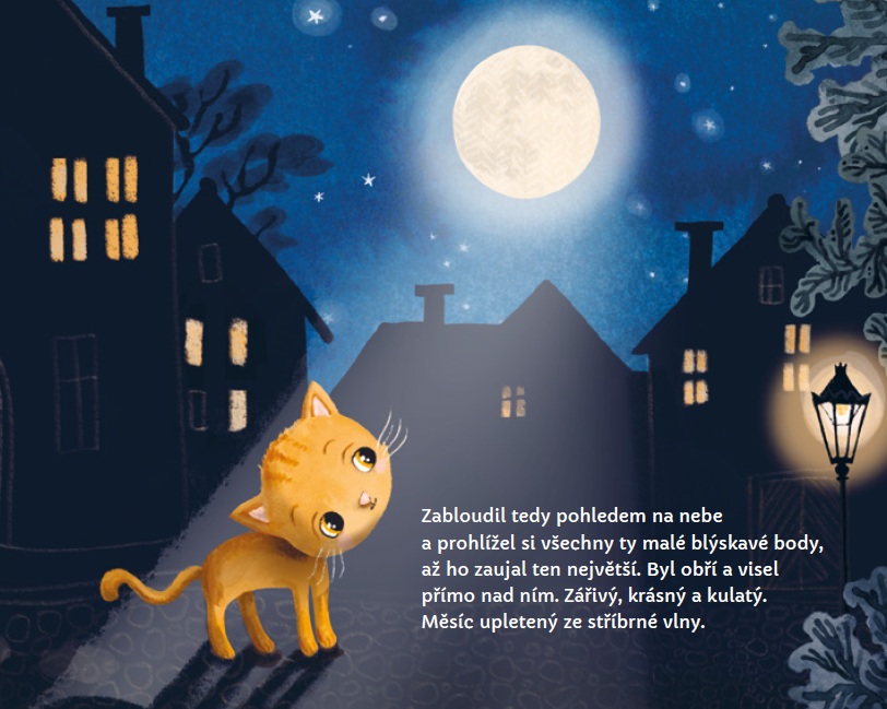 Malý všetečný kocourek zachytil drápkem cancourek měsíčního světla a tak dlouho si s ním hrál, až celý měsíc z oblohy vypáral! A aby toho nebylo málo, přízi z měsíčního světla mu odfouknul vítr. Co teď? Najde ztracenou přízi? A přijde na to, jak ji dostat zpět na oblohu? A zvládne to sám, nebo mu bude muset někdo pomoci?