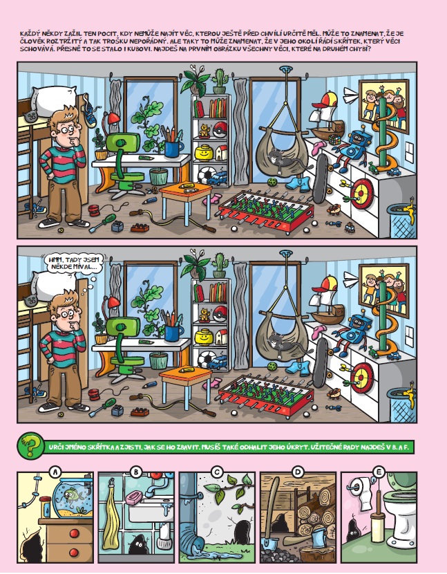 Na malé čtenáře čekají komiksové detektivní příběhy, zábavné hlavolamy, originální lexikon bubáků i nenápadný průvodce dobrým chováním.