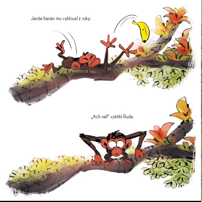 Malý opičák Ruda má pořád nějaké starosti. Když se špatně vyspí, kamarádi ho nutí být veselý, věčně nemá náladu, a nakonec mu berou i banán!