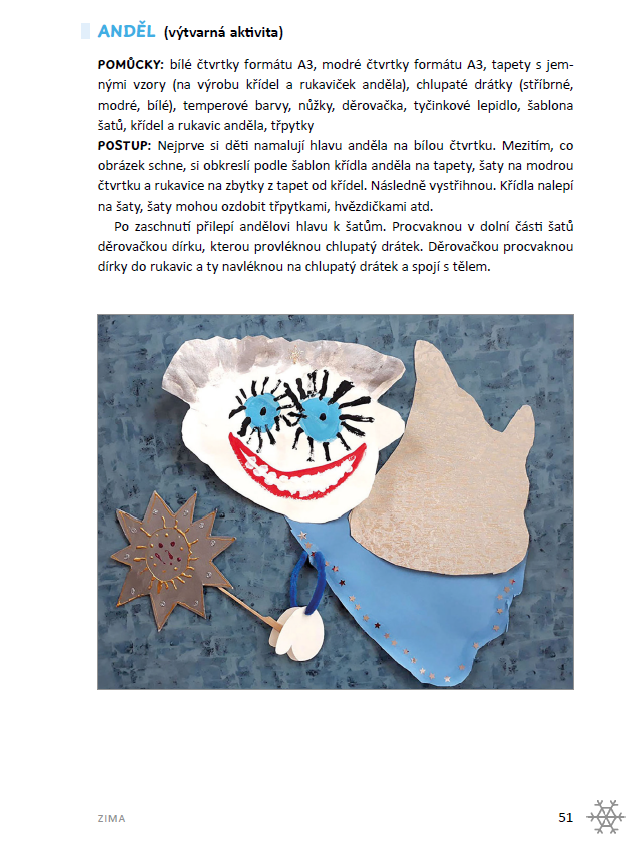 Knihu doprovází bohatý obrazový materiál – fotografie výtvarných výrobků i ilustrace od Petry Šolcové, které nejen esteticky dotvářejí obsah, ale často mají i informační charakter. Pomáhají představit podobu her, výrobků či aktivit tak, aby si je učitelky mohly snadno přenést do praxe.